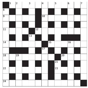 Guardian Crossword Answers Vacating house before nuclear meltdown is very hard Crossword Clue. October 13, 2022 by Henry. In this page we have posted the Vacating house before nuclear meltdown is very hard guardian crossword clue answer. The Guardian Cryptic Crossword Puzzle has a series of clues like Vacating house before nuclear meltdown is very hard for you to crack. PDF Speedy crossword No. 1,343 Speedy crossword No. 1,343 1 2 3 4 5 6 7 8 9 10 11 12 13 14 15 16 17 18 19 20 21 22 23 24 Across 1 Show indecision; waver (2,2,3,5) 9 Happen; eventuate (5) 10 Large ... Speedy | Crosswords | The Guardian Speedy crossword No 1,392 Published: 4 Jun 2022 . Speedy crossword No 1,392. May 2022. Speedy crossword No 1,391. Speedy crossword No 1,391 Published: 28 May 2022 . Speedy crossword No 1,391 ... PDF Speedy crossword No. 1,347 - guim.co.uk Speedy crossword No. 1,347 1 2 3 4 5 6 7 8 9 10 11 12 13 14 15 16 17 18 19 20 21 22 23 24 Across 1 Bubble away; about to break into a rage (6) 4 Place at an angle to ...
